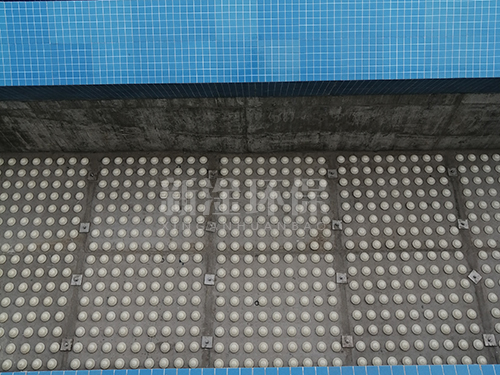 混凝土濾板嚴(yán)格執(zhí)行有關(guān)標(biāo)準(zhǔn),按設(shè)計(jì)要求計(jì)算開孔比,預(yù)埋ABS工程塑料預(yù)埋套管、配雙層雙向螺紋鋼筋。采用高標(biāo)號水泥,標(biāo)準(zhǔn)細(xì)石和石英砂,經(jīng)機(jī)械攪拌,搗實(shí)澆制而成。濾板上下兩面每平方米水平誤差±1mm。濾池中安裝達(dá)到整池誤差≤5mm的高精度,且四邊整齊、無翹缺,完全滿足濾池設(shè)計(jì)技術(shù)規(guī)范要求。濾板水平安裝精度要求較高,其重要基礎(chǔ)是涉及濾梁的整池平整及預(yù)埋鉚固濾板用的不銹鋼件定位準(zhǔn)確性。