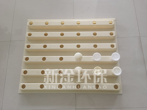 5、濾池布水區(qū)進水,根據(jù)水面來調(diào)節(jié)濾桿的上端平面在同一水平高度,從而保證進水孔在同一水平線上。